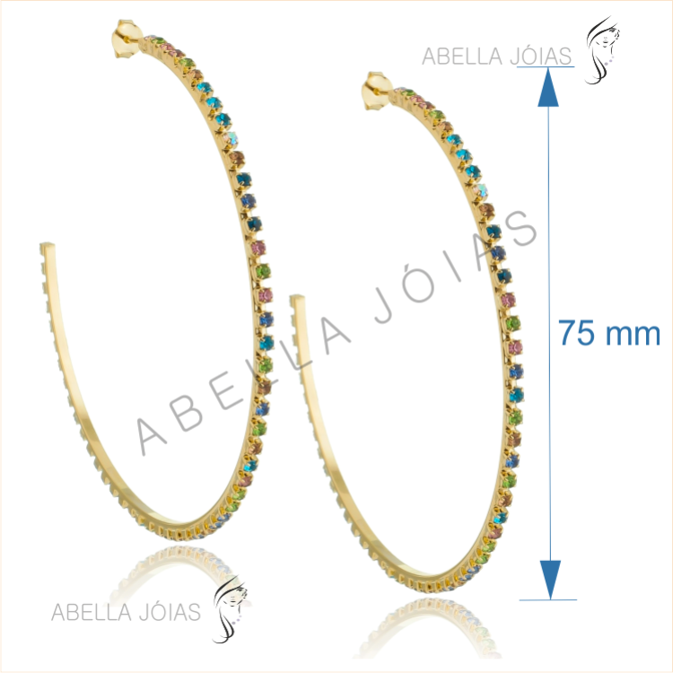 Argola de Strass Multicor Separados 75mm