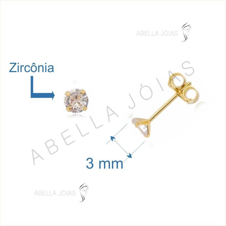 Brincos Ponto de Luz de Zircônia 3 mm.