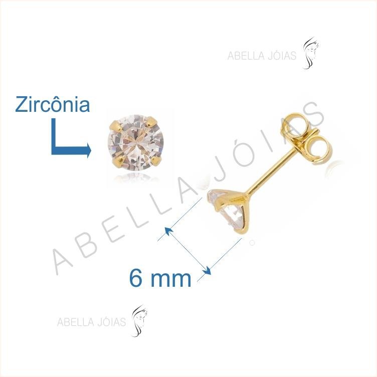 Brincos Ponto de Luz de Zircônia 6 mm.