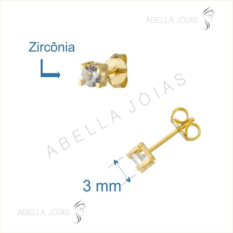 Brincos Quadrado Ponto de Luz de Zircônia 3 mm.