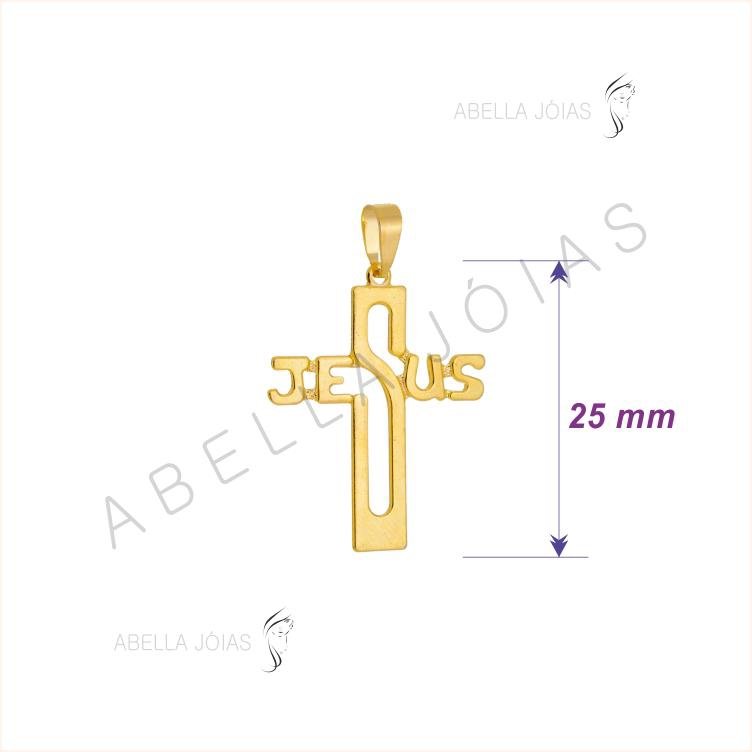 PINGENTE REDONDO C/ ORAÇÃO E CRUZ NO MEIO 25MM
