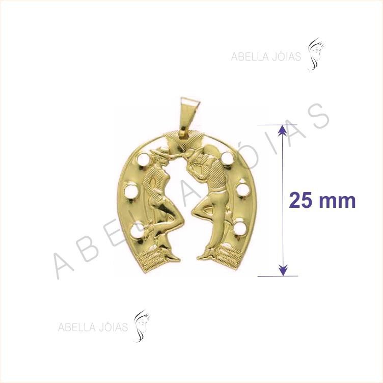 PINGENTE FERRADURA C/ CASAL CAWBOY 25MM