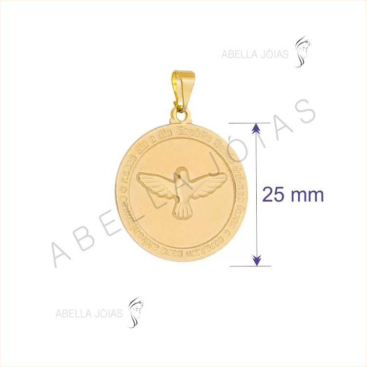 PINGENTE REDONDO C/ ORAÇÃO E ESPÍRITO SANTO 25MM