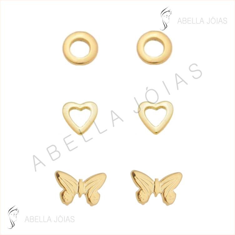 Trio Redondo Vazado Pequeno, Coração Vazado Pequeno e Borboleta